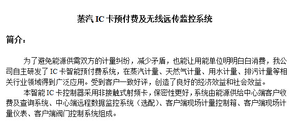 蒸汽、燃氣IC卡預付費系統